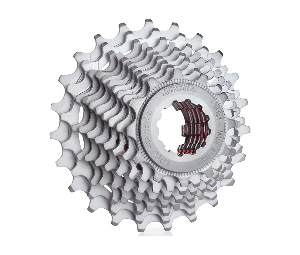 Leicht, haltbar und mit hervorragender Schaltperformance, der Miche Primato 10SH Zahnkranz. Dank Stahl Ritzel leicht und verwindungssteif. Die Miche Schaltqualitaet basiert zu grossen Teilen auf der jahrzentelangen Zusammenarbeit mit Campagnolo und ist vergleichbar mit der Shimano, Sram oder Campa Zahnkraenzen. Die CNC bearbeitete Ritzel aus waermebehandeltem und mattverchromtem Spezialstahl sind haltbar und hochbelastbar.