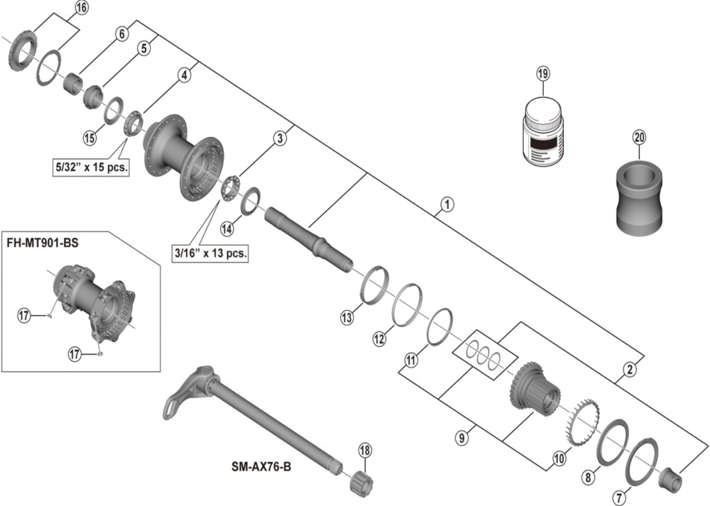 Ersatzteile fuer die Shimano FH MT901 Naben