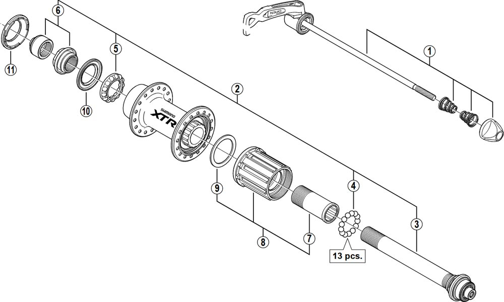 Shimano XTR FH-M970 Hinterradnabe Ersatzteile:
