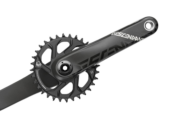 Die neue Descendant Kurbel mit 48 er Kettenlinie fuer Mountain Bikes mit Standard Hinterbau – Einbaubreite von 135 bis 142 mm. Die Descendant Kurbel ist hart im Nehmen und laut Truvativ die stabilste, steifste und leichteste Kurbel auf dem Markt. Trotz des geringen Gewichts freigegeben fuer den All Mountain, Trail und Enduro Einsatz. Die Direct Mount Kettenblattaufnahme fuer vereinfachte Kettenblattwechsel und erlaubt die schnelle Montage von den Sram Direct Mount Kettenblaettern.