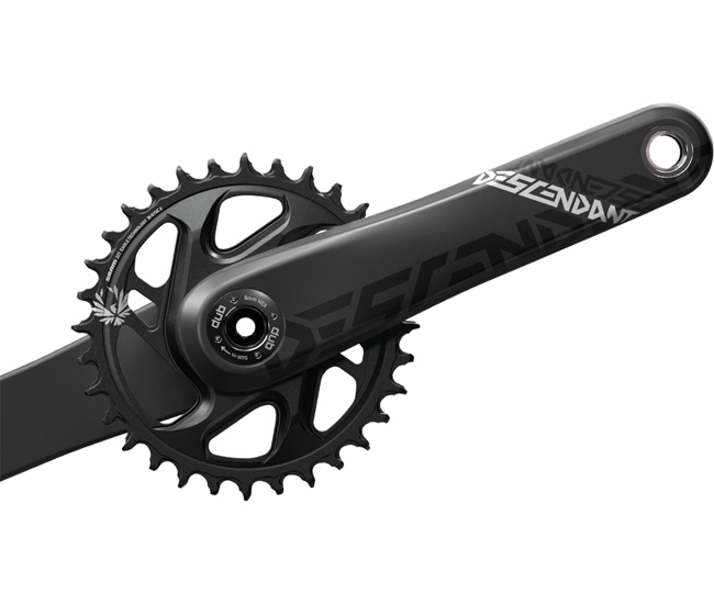 Die DUB Ausfuerhung der Truvativ Decendat Carbon Kurbel bietet die Festigkeit von Carbon, kombiniert mit der Robustheit von schwerem Metall. Die Descendant Carbon-Kurbel setzt auf ein exklusives Truvativ Carbon-Herstellungsverfahren. Das Ergebnis ist eine Kurbel, die leicht genug fuer XC, aber kraeftig und hart genug fuer Enduro ist. Bei der Descendant verschmelzen Stil und Substanz.